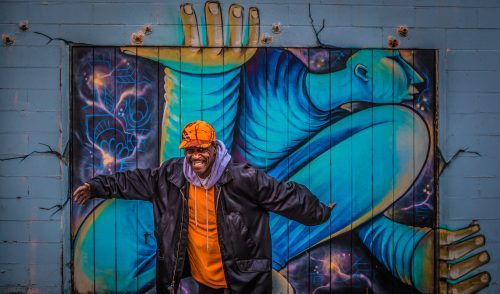 At one time Ebo was a truck driver, but lost his commercial license when he incurred a driving-under-the-influence conviction. Now he is homeless, living in an alley surrounded by art, doing what he can to survive.